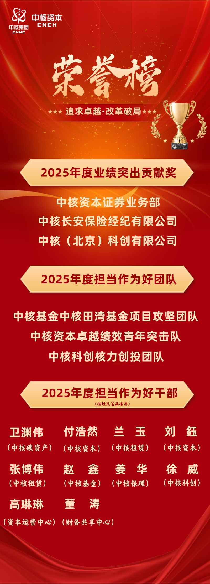 会议指出,2025年中核资本在集团公司党组的坚强领导下,谋事干事成事,向新向优发展,圆满完成年度经营目标任务。聚焦集团主责主业,充分发挥资本投资运营和产业金融协同服务的价值作用,构建完善投租理险碳+科创综合性业务集群,建立健全本部直投+基金投资+科创投资三维投资体系;坚持资本赋能、以融强产,为产业单位提供专业化、特色化租赁及保理服务,聚力攻坚打造集团统一的基金管理平台,为集团内成员单位提供保险经纪服务,发挥碳资产管理专业化平台功能,力推中核零碳模式及核能碳排放方法学研究,打造中核集团核工业新质生产力创投平台,服务核工业科技创新和科研成果转化战略价值日益凸显。