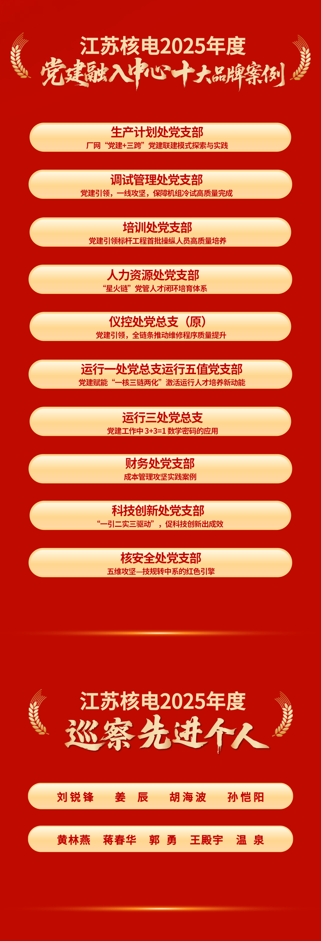 2025年是我国核工业创建70周年,也是十四五收官之年。江苏核电党委坚定拥护两个确立、坚决做到两个维护,在集团公司党组和中国核电党委的正确领导下,充分发挥把方向、管大局、保落实领导作用,坚持稳中求进工作总基调,坚持以高质量党建引领保障高质量发展,高质量完成十四五主要目标任务,两个一流核电基地建设迈出坚实步伐。