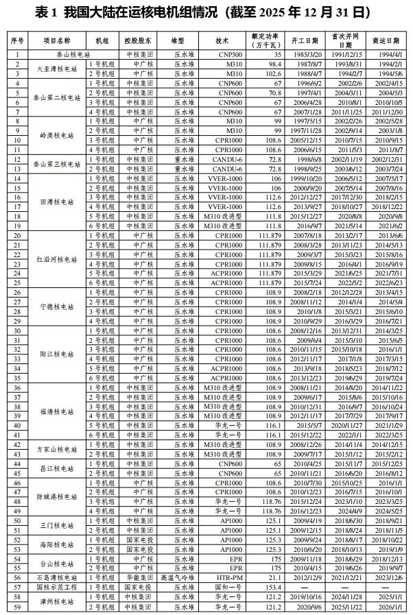 [1] 本文均指我国大陆核电数据,未包括我国台湾地区核电数据,下同。