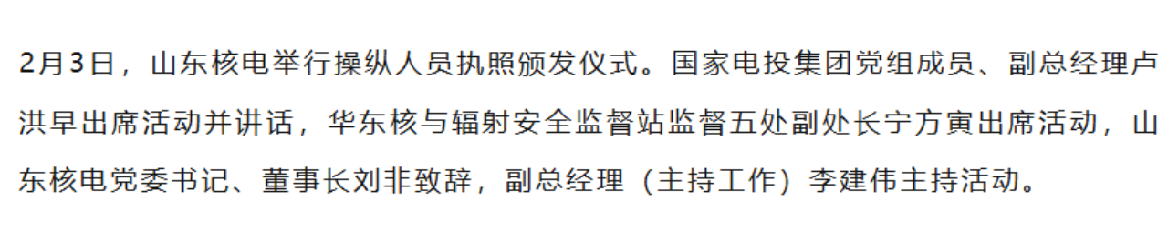 山东核电:总经理职务由副总经理李建伟接任(主持工作)