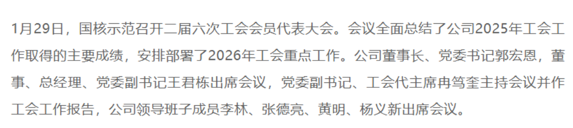 国核示范:郭宏恩接任董事长、党委书记,王君栋接任总经理、党委副书记
