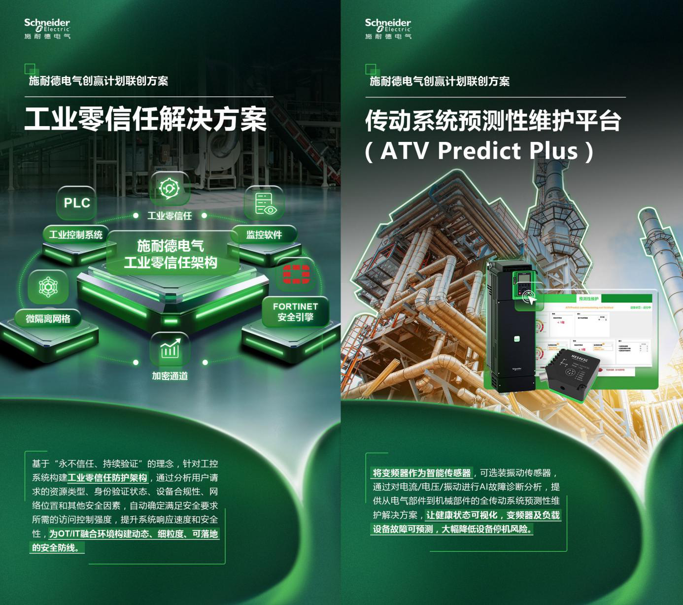 其中,有两项方案围绕运维模式与系统协同进行深化,它们分别是工业零信任解决方案和传动系统预测性维护平台(ATV Predict Plus),合作伙伴为防特网和辉度智能,目前已落地化工、冶金、市政水等行业。