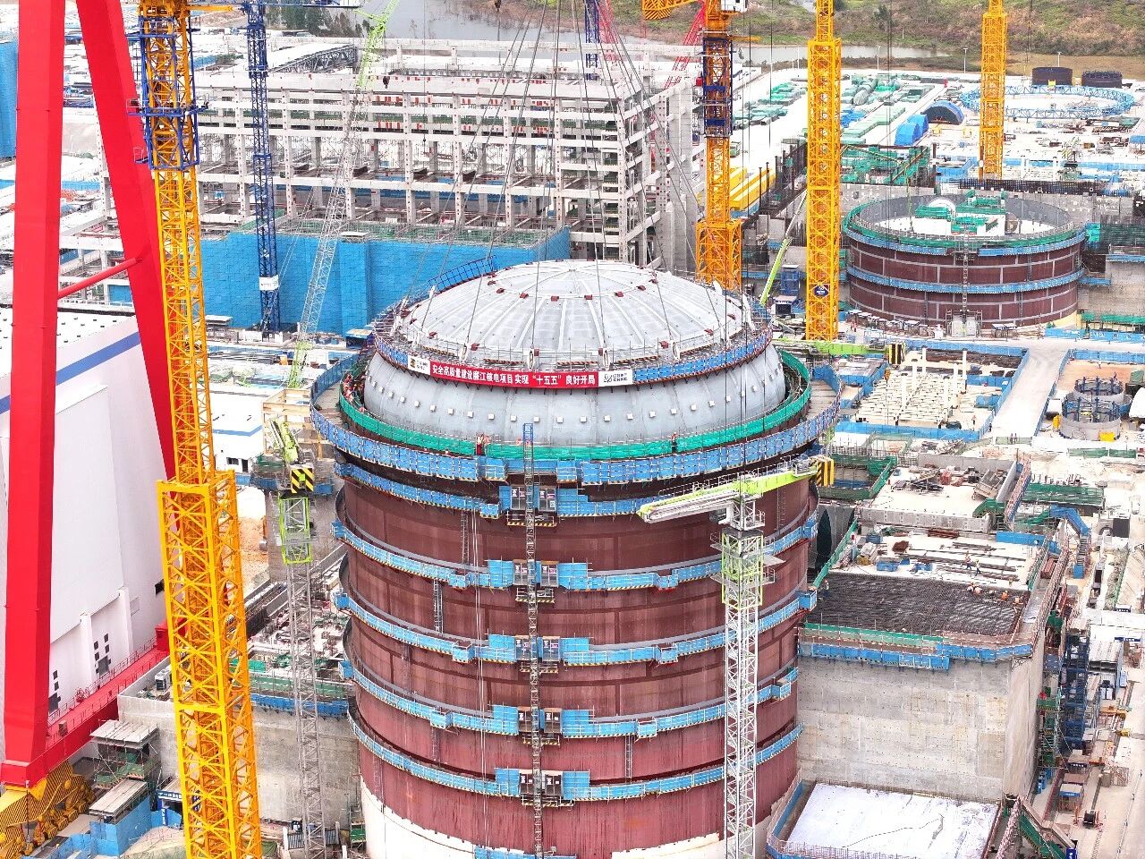 2月10日,国内首个采用海水二次循环冷却技术的核电项目广东廉江核电1号机组核岛钢制安全壳顶封头吊装就位,标志着核岛反应堆厂房封顶,厂房主体结构正式成型。