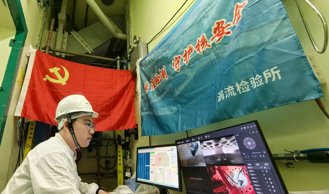 中广核苏州院下属中广核检测技术有限公司完全自主研发的国内首台余热排出换热器涡流检查定位机械臂系统,在群厂各核电基地成功应用。该技术攻克了高精度视觉定位、运动控制算法及复杂环境可靠传输等一系列难题,该机械臂的应用标志着该领域检查作业实现了从传统模式向自动化、智能化的深刻转变。在实际应用中,该机械臂系统实现了零碰撞、零故障的卓越表现,通过以机代人执行精准定位与操作,极大优化了工作流程,其高效率与高可靠性,有效降低作业风险。