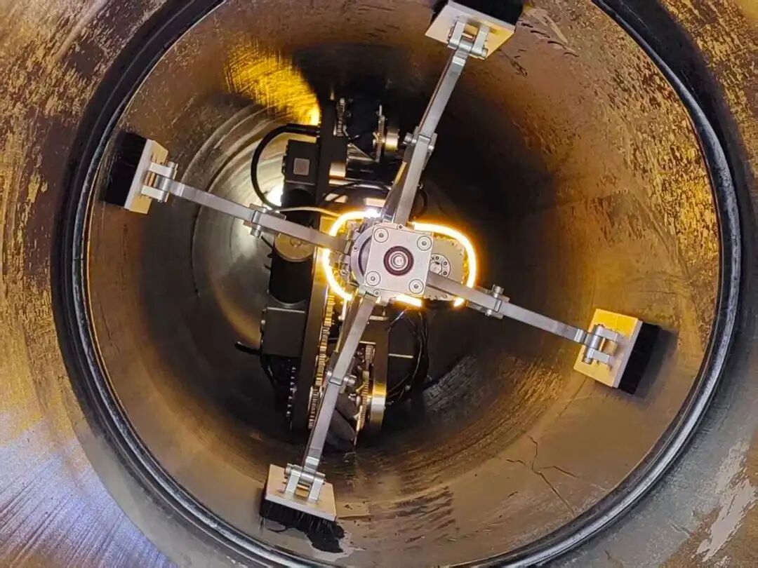 阳江核电研发的可越障管网检查和清洗机器人在厂区饮用水系统主管道首次试应用成功。该机器人采用麦克纳姆轮与蛇形结构的复合设计,可轻松应对管内淤泥、弯头、阀门等多种复杂环境,实现多管径灵活适应与无障碍通行;搭载自动对焦高清摄像头与激光雷达传感器,能对管网内部进行全方位高清扫描,搭配可旋转雨刷与机械臂协同作业单元,扫清视觉与操作盲区,为后续作业奠定坚实基础。