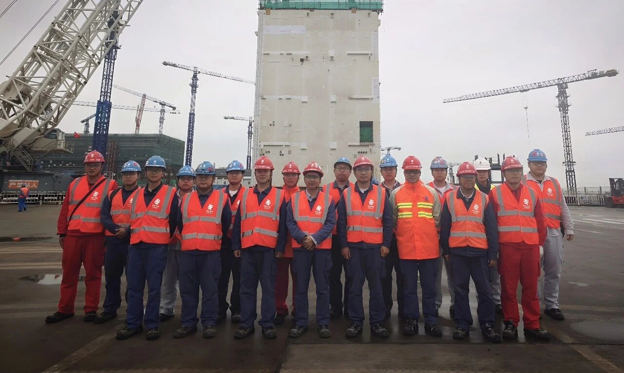 为确保吊装顺利就位,上海核工院提前谋划,成功打造CA20结构模块拼装示范区,多措并举化解施工难点:多轴线、多组件并行施工,扩展作业面;以正式物项充当内置配重,促成调平一次成功;严密落实防台措施,保障春节前后安全生产,确保多家承包商有序衔接、吊装就位工作高效推进。
