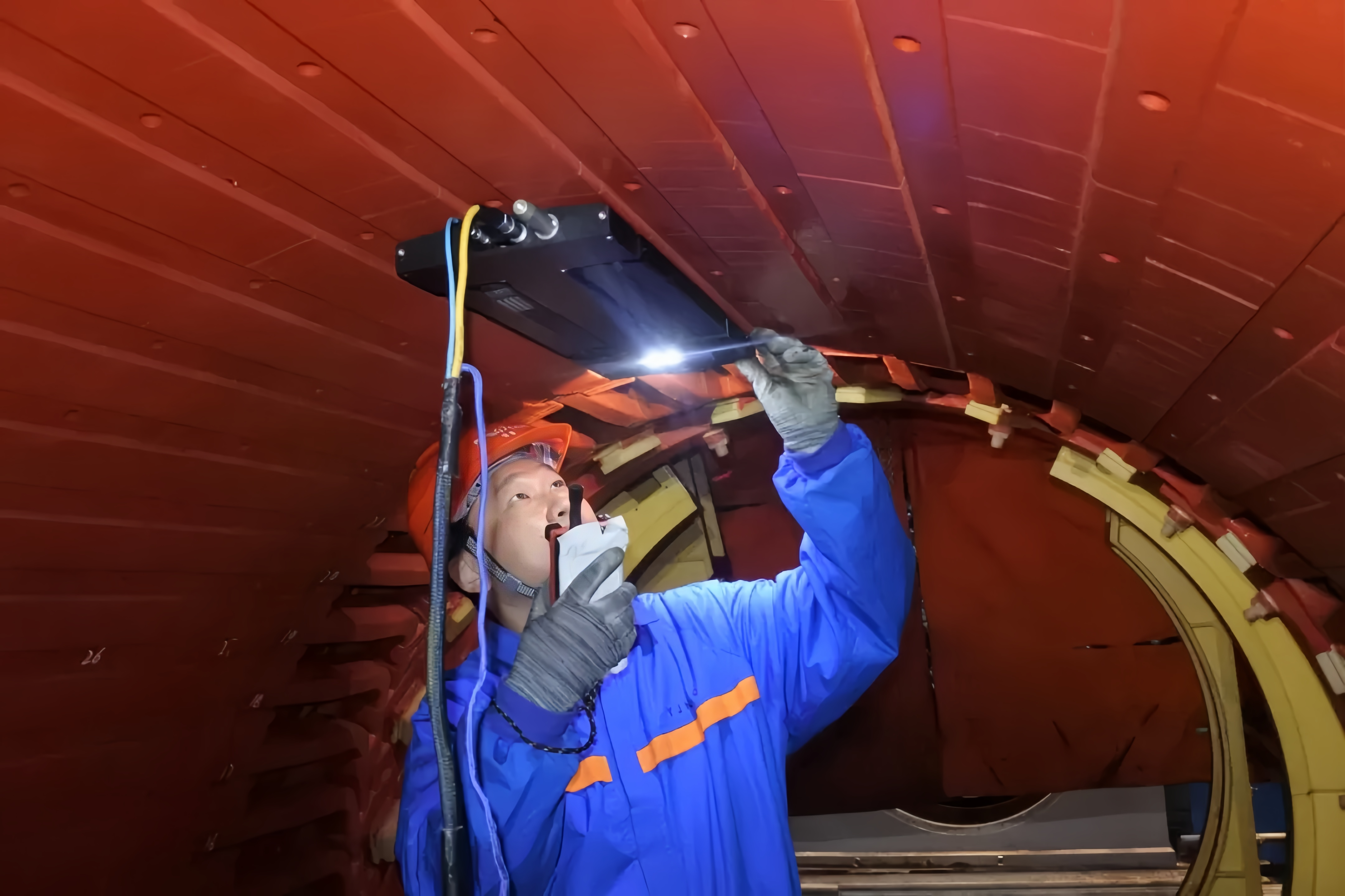 工作负责人正在对悟空Ⅱ多功能机器人的爬行状态进行检查
