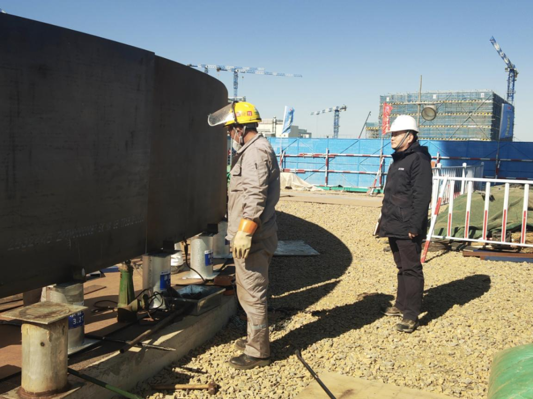 春风和煦,万物复苏。在石岛湾核电扩建一期工程除盐水箱区域,石岛湾项目工程人正积极推进水箱壁板吊装、点焊作业,严格检查吊装预制构件的每一道焊缝,以实干保障工程建设高质量推进。