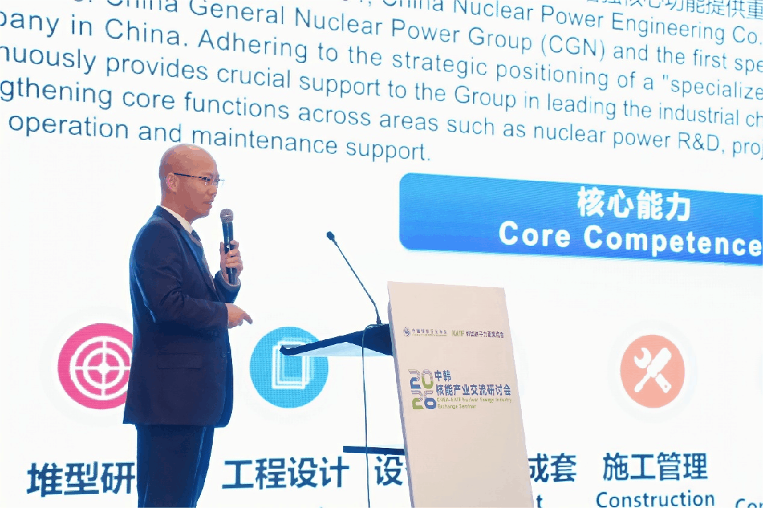 会议邀请到中广核工程有限公司、韩国水电与核电公司、苏州纽威阀门、中乌先楚、Flowserve KSM、Energyen公司等共计11家企业代表围绕中韩核能供应链发展现状及海外市场拓展经验作专题报告。会议还特别安排了B2B对接环节,帮助双方企业代表进行更加聚焦的产业交流。