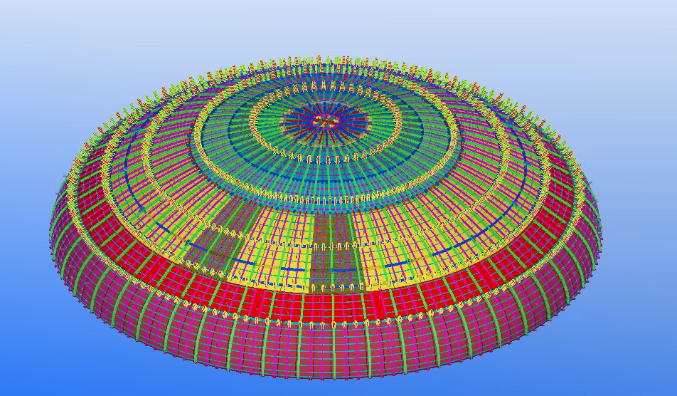在外穹顶模块整体组焊完成后,对背肋角钢及型钢拉杆进行焊接成为首道关键挑战。项目团队迅速抽调精英焊工组成突击队,最终提前完成全部焊缝施工,一次合格率达到100%,为外穹顶吊装筑牢基石。