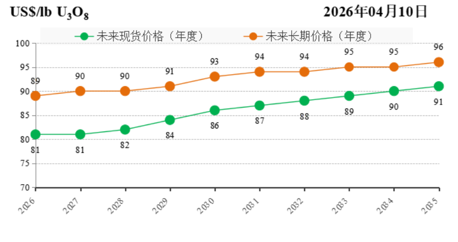 2026年4月10日,中国核能行业协会发布第65期CNEA国际天然铀价格预测指数(2026年04月)。
