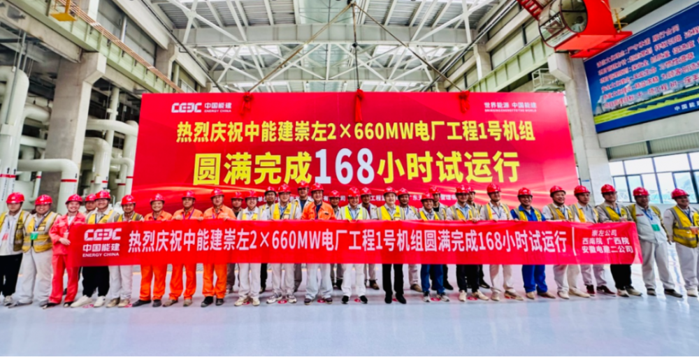 4月24日,中国能建安徽电建二公司承建的中能建崇左2×660兆瓦电厂工程1号机组高质量完成168小时试运行,正式投入商业运营,运行期间,整套机组系统稳定,各项性能指标良好。