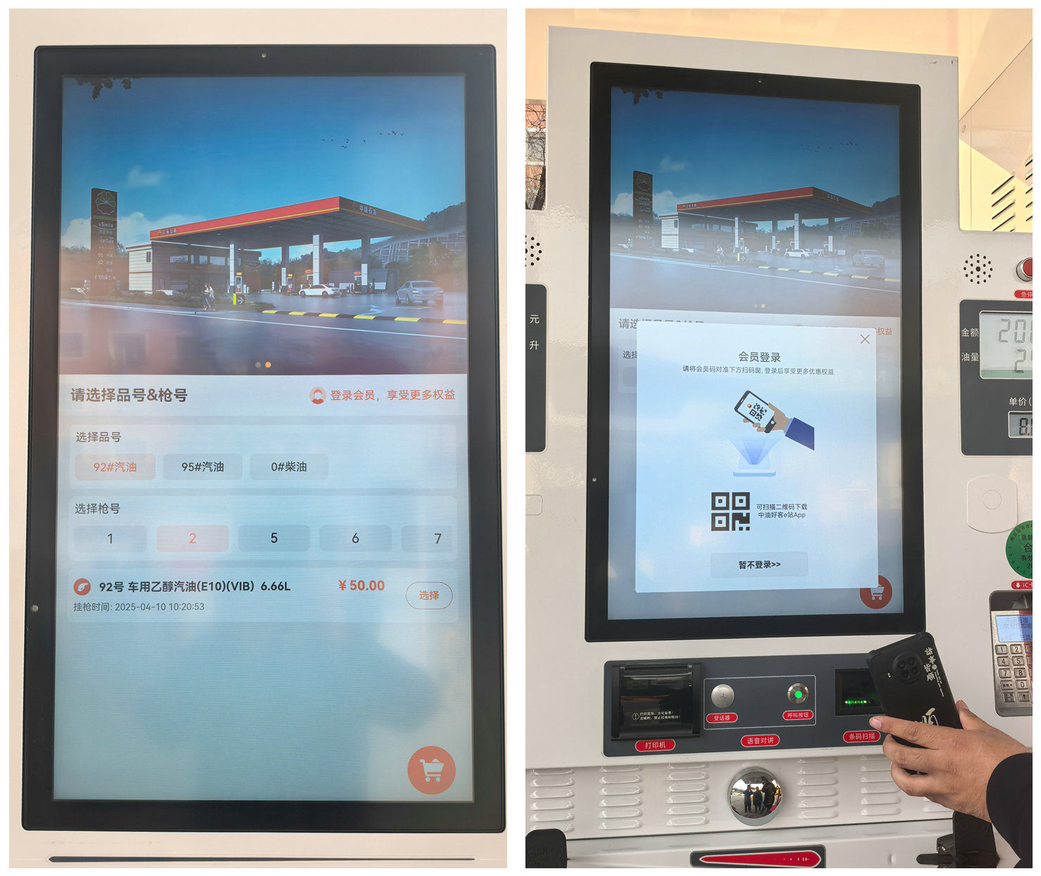 得益于开源鸿蒙分布式架构的技术特性,该加油机还可实现与其他物联类终端的高效互联互通,优化了用户在加油场景中的操作流程,实现人机交互体验的全面升级。以公滨路加油站为例,站内部署的四台智慧加油机均配备32吋多媒体智能屏,并配备语音对讲、语音播报、小票打印、二维码扫码器等硬件设备,在OpenHarmony的加持下,设备支持将室内EPS支付功能同步至加油终端屏幕,并可调用油枪支付信息,便于用户实现户外扫码支付。此外,加油机还兼容微信、支付宝、云闪付、中石油e享卡等多种支付方式,同时支持非油商品条码识别及油品与非油商品混合支付,极大提升了交易便捷性与服务效率,为客户带来全新、高效的加注体验。