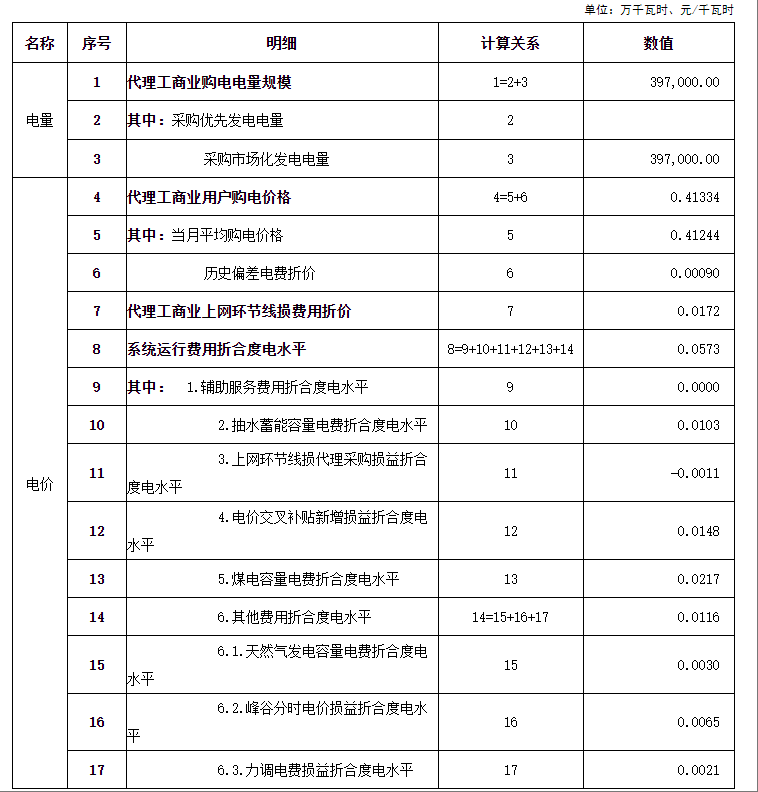 4.为更好保障用户知情权,将此前“保障居民农业用电价格稳定新增损益分摊水平”细分为“电价交叉补贴新增损益折合度电水平”、“上网环节线损代理采购损益折合度电水平”。