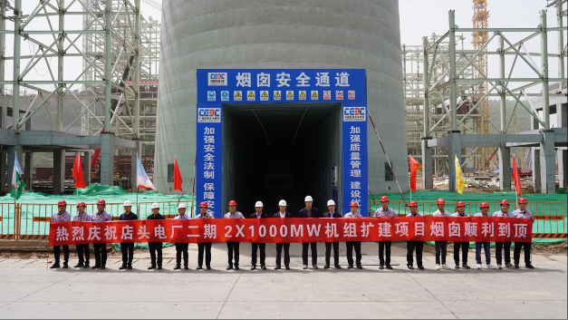 5月5日,中国能建西北电建参建的黄陵店头电厂二期2×1000兆瓦扩建项目烟囱筒壁结构顺利到顶。