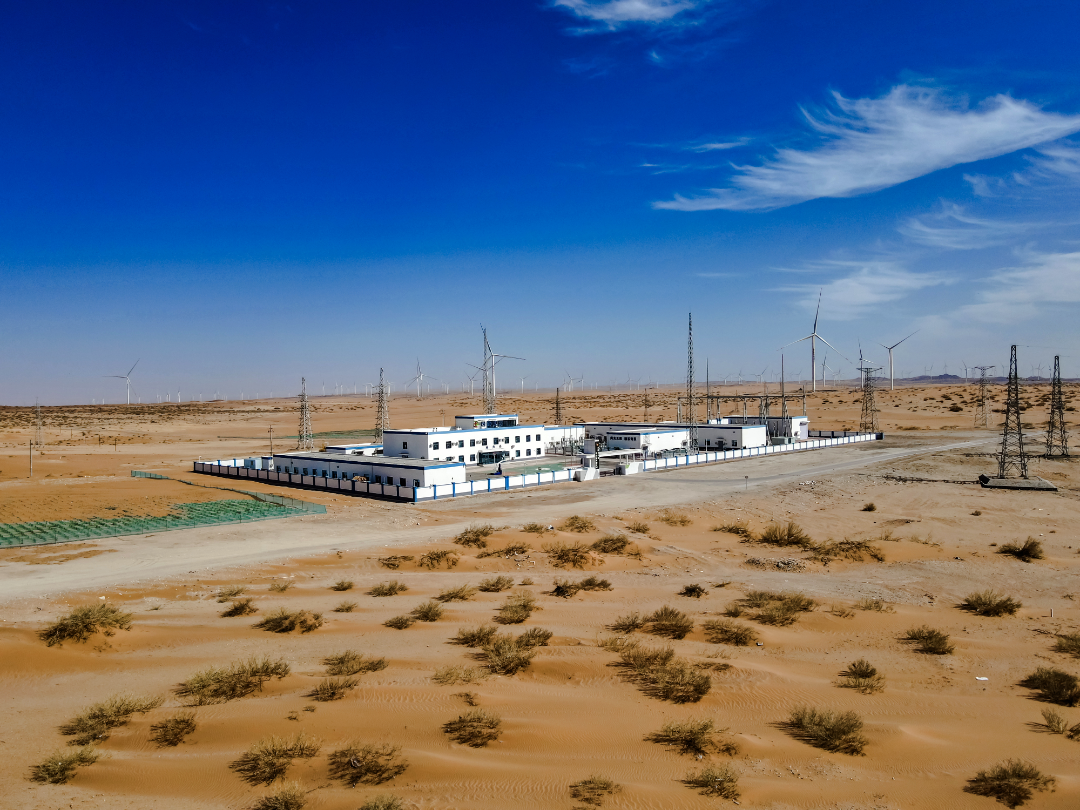 国电投阿拉善基地400兆瓦风电项目,位于内蒙古自治区阿拉善盟阿拉善左旗北部,项目安装87台风电机组,新建一座220千伏升压站。公司设计项目部根据创优策划,制定了项目高质量发展策划、开展、实施了大量科技创新、标准制定、设计优化、设计施工一体化等系列工作,为后续沙戈荒风电基地项目设计建设积累了丰硕的技术成果。