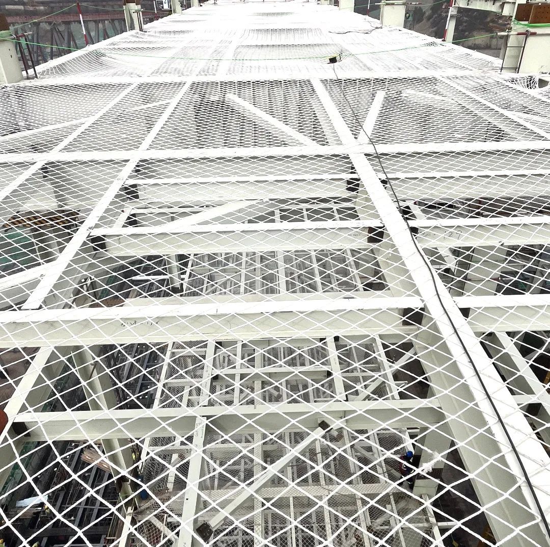 施工过程中,项目部始终坚持高标准、严要求,将“精品意识”融入每一个施工环节。从钢架吊装的精准对接,到热二次风道的预制与安装,每一项工程都力求完美。特别是在大板梁吊装过程中,精准方案设计:针对叠梁结构特点(如K2-K4采用上下叠梁形式),优化吊点布置和受力分析,确保吊装稳定性;设备协同管理:通过1250吨履带吊主吊、140吨平臂吊辅助的联合作业模式,攻克高空定位难题。全流程质量管控:执行《DL/T5210.2-2018》验收规范,实施质量三检制与举牌验收制,关键尺寸误差控制在±2mm内,项目团队克服了高空作业、大件吊装等技术难题,充分展现了团队的匠心精神。