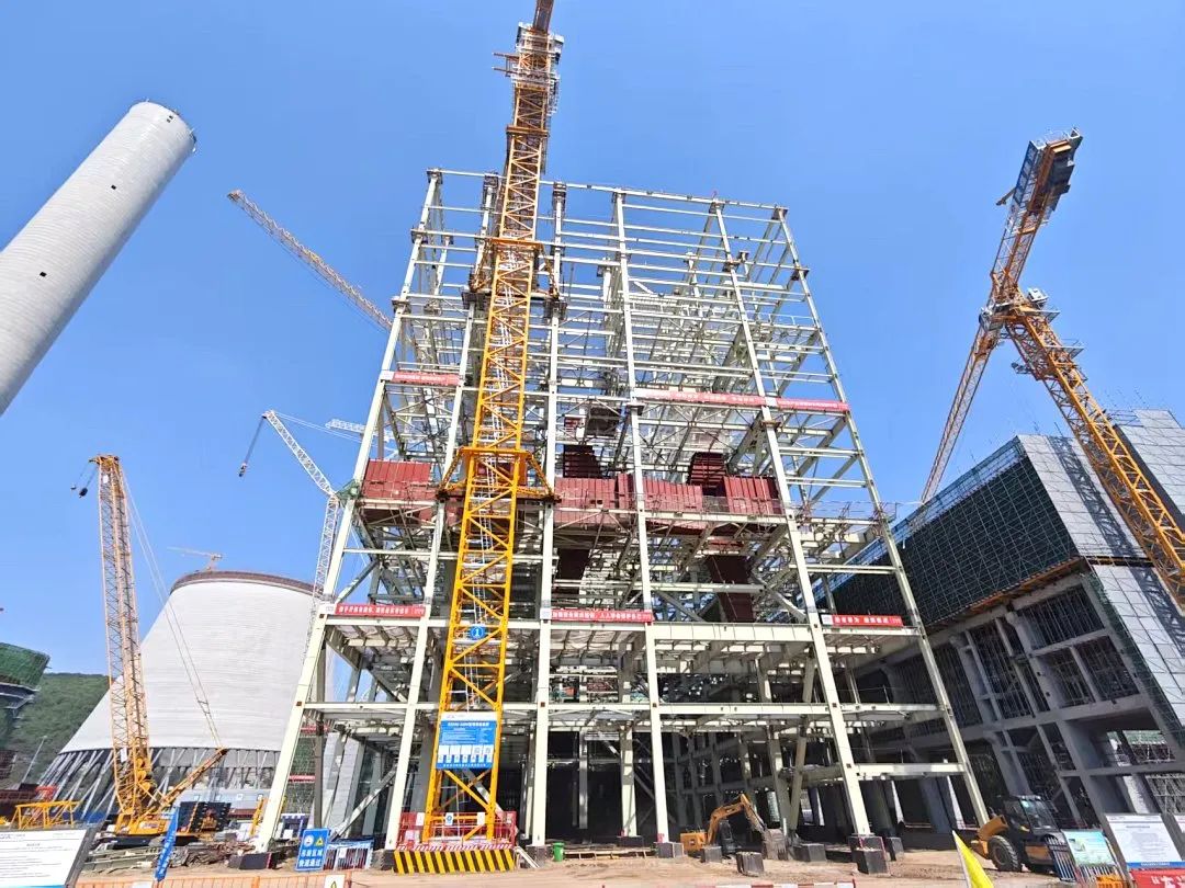 黄陵店头百万项目部紧密围绕节点目标,合理规划施工计划、科学组织人员和物资,先后完成了大板梁吊装、循环水管道安装、除氧器就位、锅炉受热面开口等重要节点。自2024年11月15日锅炉钢架吊装开始,到 2025年7月17日锅炉大板梁吊装完,工序紧密衔接,每一步的施工都经过严密的策划与实施,确保了施工进度的稳步推进。