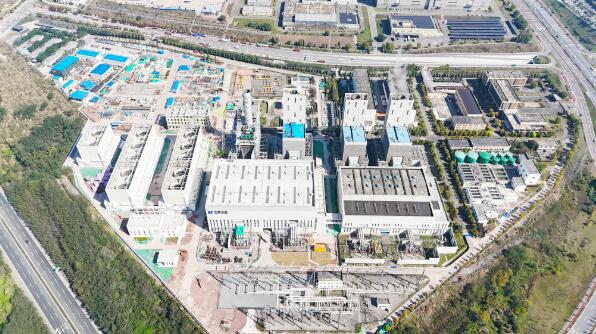 项目位于重庆市北碚区水土新城,选用世界上最先进的9H级燃机型号,装机容量2×742兆瓦,纯凝工况下发电热效率可达64%,度电碳排放量仅相当于同等级煤机的50%,代表了目前国内700兆瓦级燃气-蒸汽联合循环发电机组最高水平。