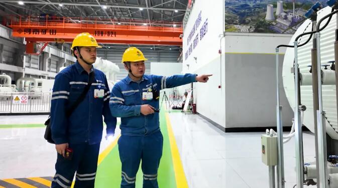 ▲贵州金元织金“上大压小”异地改建项目(2×660兆瓦)2号机组平台,运行人员正在检查高加系统运行情况。