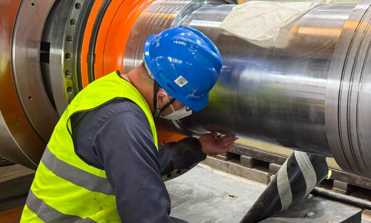 发电机转子全长13063毫米,重73.6吨。针对汽轮发电机转子穿转技术难度大、风险系数高、作业流程复杂等问题,项目部周密部署,超前策划,科学编制施工方案,在吊装前多次组织汽轮发电机转子吊装专题会议,制定详细吊装方案,部署安排各项工作任务。转子穿装前,组织相关人员对发电机定子、转子进行全方位的检查清理工作,认真组织现场安全作业交底,为穿装转子作业做好前期准备工作。