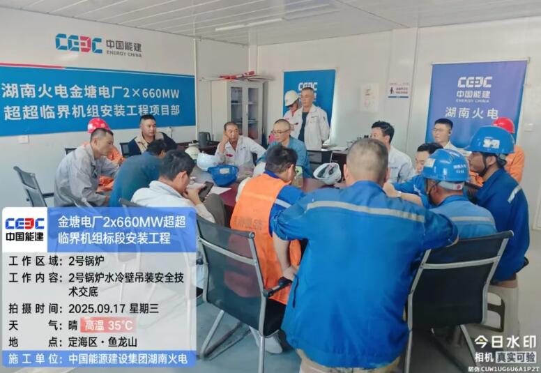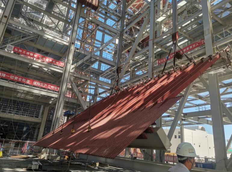 9月17日上午11时16分,荣盛金塘电厂2×660MW超超临界机组标段安装工程项目2号机组锅炉受热面顺利开吊。