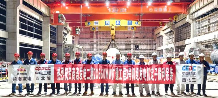 9月25日晚11点51分,商洛二期2×660MW超超临界空冷燃煤3#发电机组电机定子顺利吊装就位,标志着项目又一关键节点圆满完成。