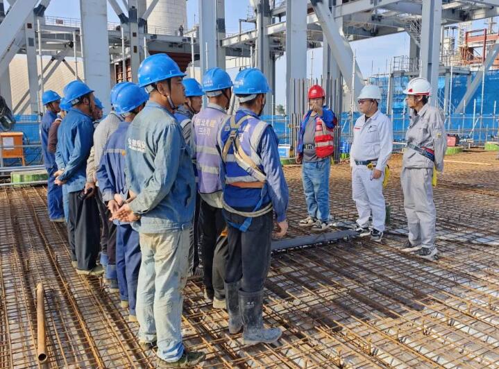 项目团队自开工以来,科学统筹资源、优化施工方案,克服天气影响、材料到货晚的诸多挑战,从07月17日回填土完成,到09月04日7.45m米浇筑,再到14.95m层梁板柱混凝土浇筑完成,历时76天,高效完成从基础施工到平台浇筑全过程,较原计划提前7天,充分展现出了公司敏捷高效的履约能力和“敢打硬仗、能打胜仗”的优良作风。