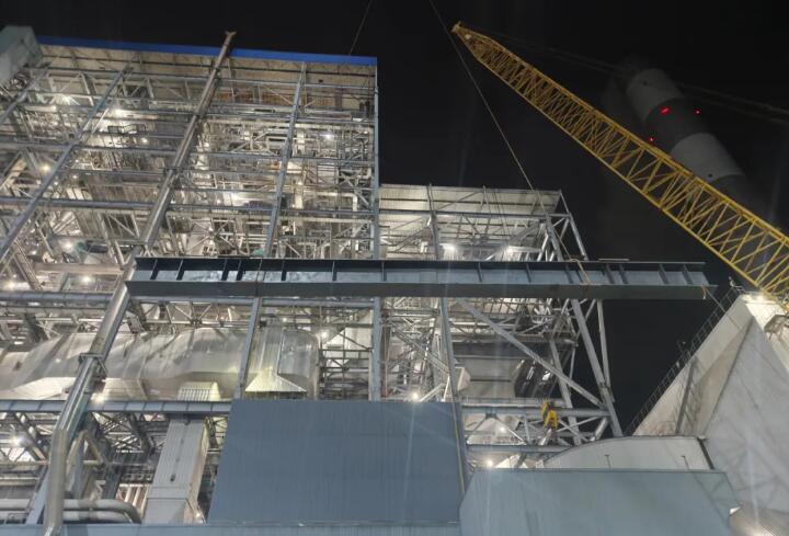 10月8日凌晨4时,3#锅炉最后一段栈桥钢结构精准吊装就位,标志着输煤系统实现又一重大节点,为后续皮带安装与系统调试创造了有利条件。该输煤皮带钢结构总重130吨,跨度24.8米,是连接主厂房与一期扩建端的关键通道。施工期间,安全管理、监理及技术人员全程旁站监督,确保各个环节安全可控、精准就位。