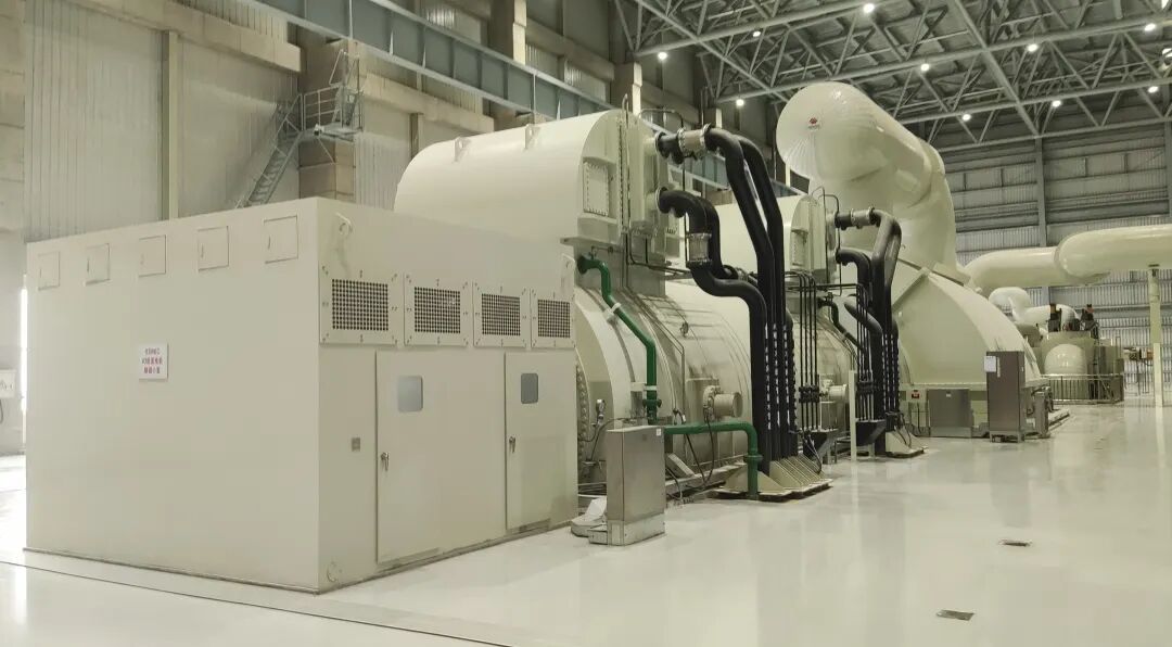 汽轮发电机设备采用哈电集团电机公司研制的660兆瓦等级水氢氢冷却、自并励静止励磁汽轮发电机,通过气隙取气轴向通风、定子线棒楔下波纹板弹性防松、弹簧板轴向滑移、双层匝间绝缘搭接等技术,使其具备优异的快速启停能力和灵活变负荷性能,能更好适应当前电力系统深度调峰的需求,并显著提高机组运行灵活性和电网调节能力。