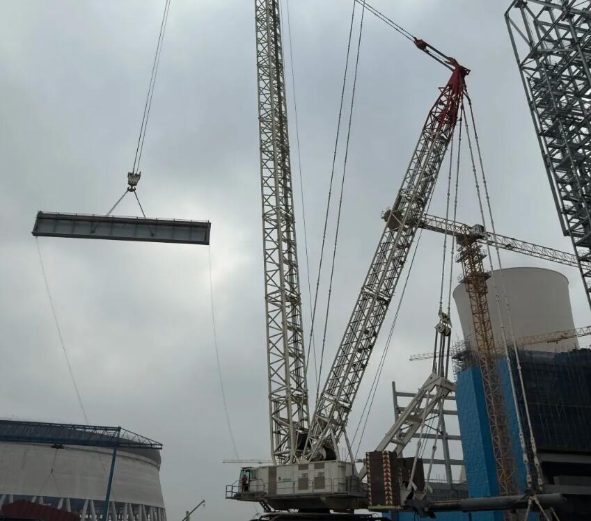 8号锅炉大板梁顺利吊装就位