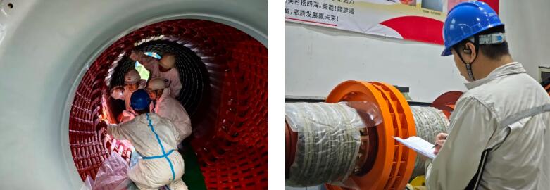 穿装过程中,各专业岗位高效协同、紧密配合。起重人员精准指挥行车,将转子平稳吊运至定子励端;安装人员实时监测转子与定子间隙,动态调整穿装姿态与进度。