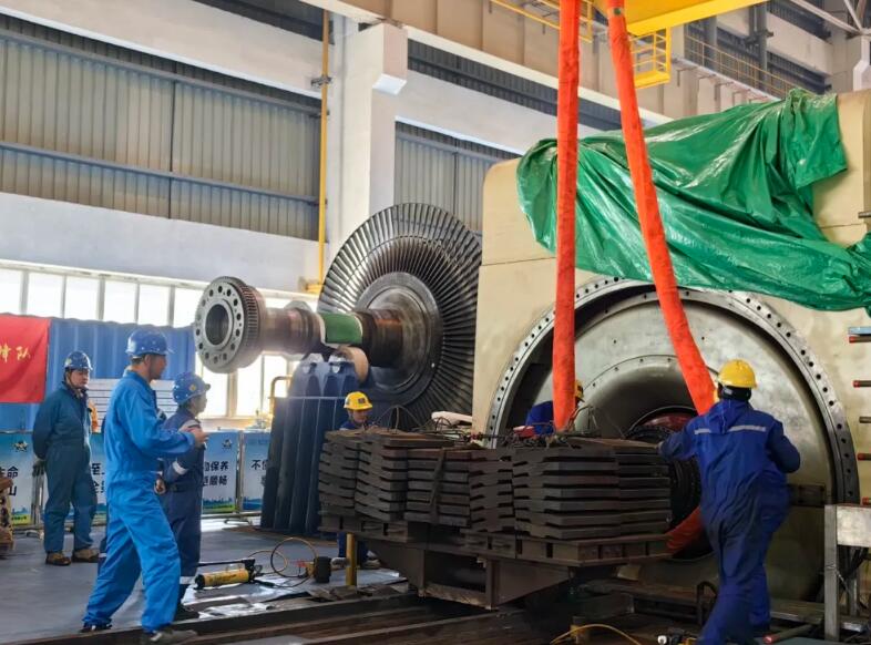 10月22日上午,华润电力南京公司化工园项目(以下简称“公司”)415A检修工作迎来重要节点——#4发电机穿转子工作完成!