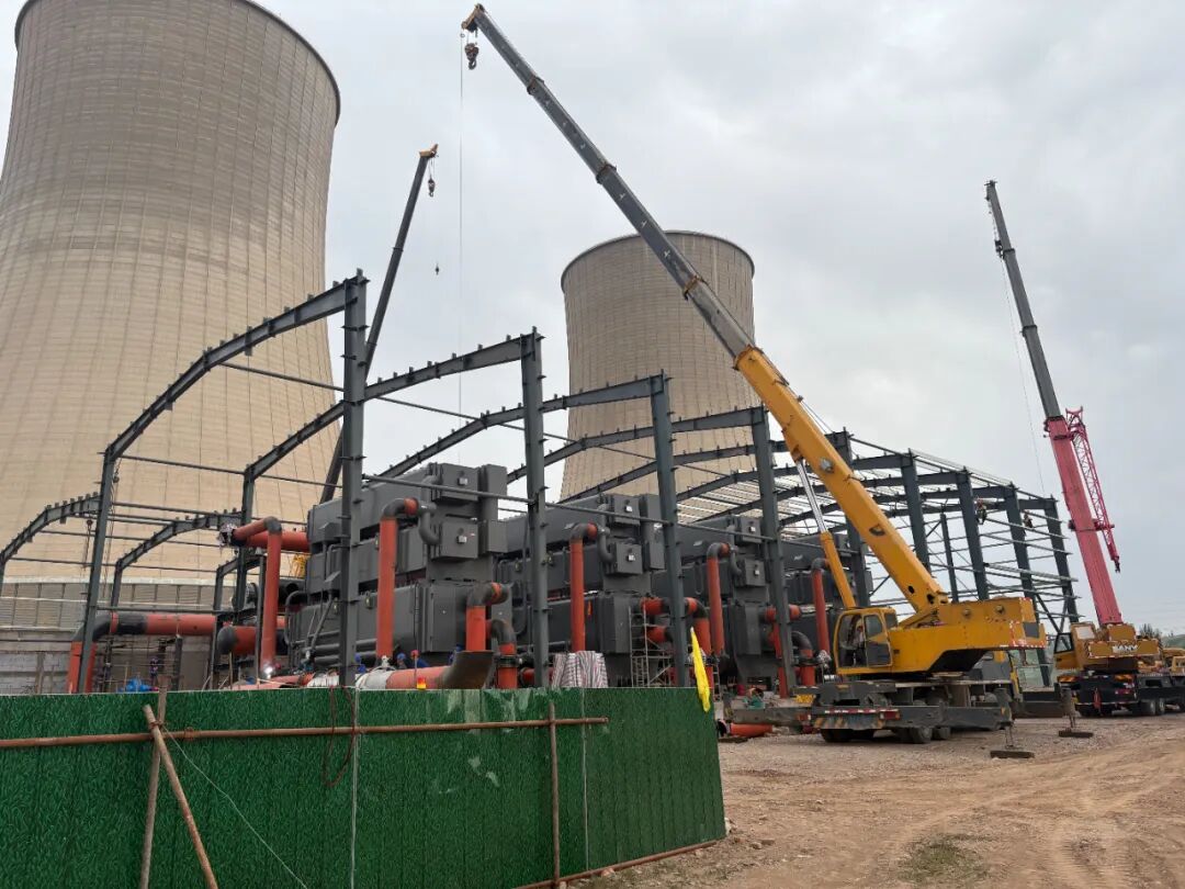 8月6日,热泵核心主设备精准就位,吊装误差严格受控;