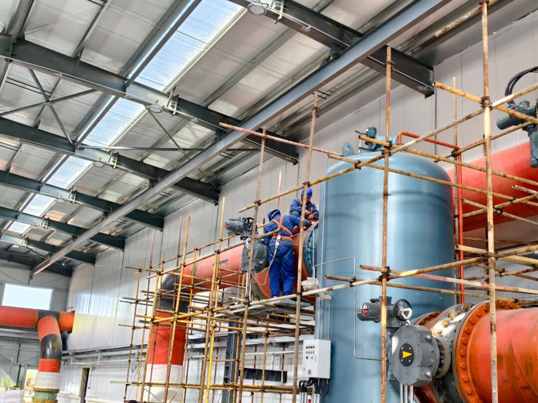 8月25日,外线蒸汽、热网水等各类管道安装及焊口检测全部完成,搭建起可靠介质传输通道;