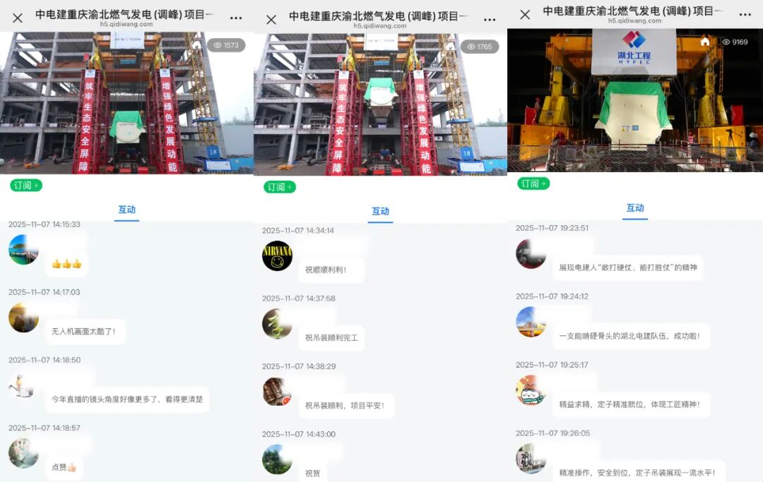 本次吊装直播在摄制技术上全面升级,构建了“固定+移动+空中”三位一体的直播矩阵。多路信号通过专业导播系统实时切换,配以主持人的现场解说,为观众打造了身临其境的观摩体验。此次直播累计吸引超一万人次关注,直播间热度持续攀升,互动评论超200条,不仅开创了能源建设项目直播的新标杆,更是项目透明化施工管理的重要实践,通过实时展现关键工序,让公众零距离见证现代化工程建设的高标准与严要求,展现了企业主动接受社会监督、推动行业阳光建设的责任担当。
