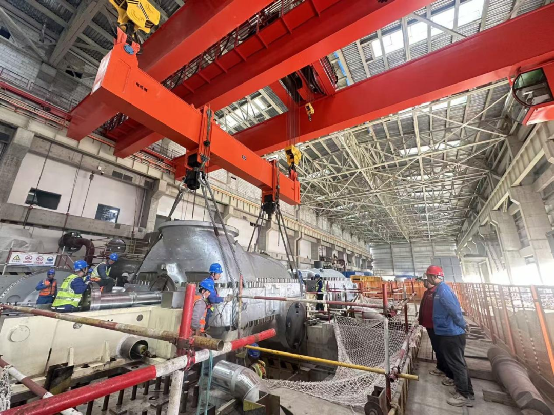 当日16时22分,3号机组汽轮机高压缸、中压缸模块在精密控制下精准吊装就位。此次吊装的汽轮机核心动力单元由东方汽轮机有限公司定制供货,高压缸模块重180吨,中压缸模块重210吨,其超大吨位对吊装作业的技术与安全管控提出极高要求。
