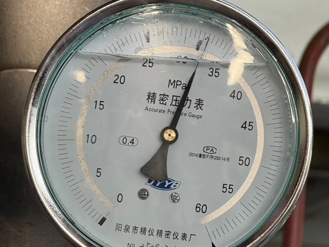 本次水压试验严格遵循相关方案执行。一次汽系统升压至工作压力25.73MPa全面检查无异常后,顺利升至试验压力32.26MPa,稳压20分钟无压降。整个升压过程严格控速,低于工作压力阶段≤0.3MPa/min,试验阶段≤0.1MPa/min。降压至工作压力后系统压力保持稳定,膨胀指示读数正常,阀门关闭严密,无任何泄漏及残余变形,经联合验收,一致认定水压试验合格。