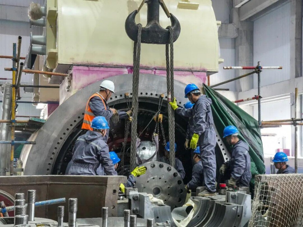2025年12月14日上午9点,中煤六安电厂一号机发电机转子穿装工作正式拉开帷幕。技术难度高、风险系数高,且作业流程复杂,与以往采用传统手拉葫芦不同,这一次,我们采用了更先进的电动葫芦牵引。