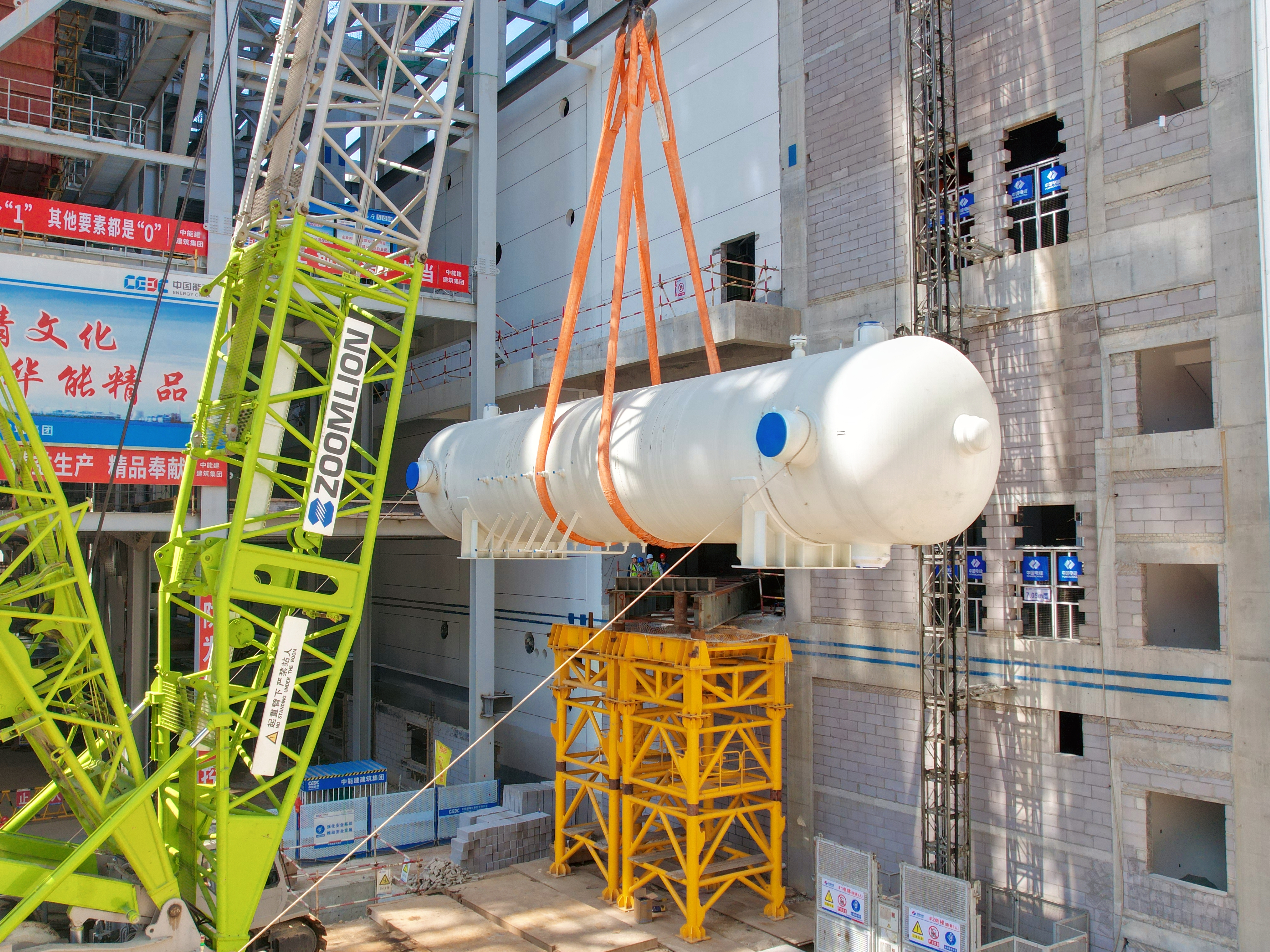 3月16日,中国能建建筑集团华能海门百万项目5号机组3号高压加热器顺利吊装就位,至此,该机组4台高压加热器及1台外置蒸汽冷却器已全部吊装完成,为后续安装工作奠定了坚实基础。