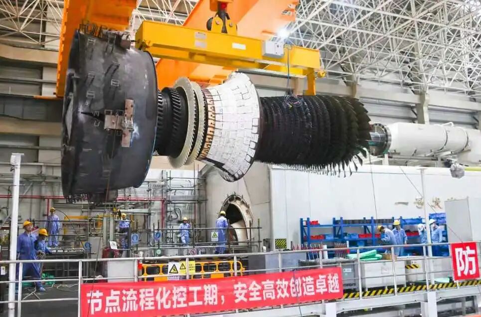 检修现场,转子回装作业井然有序。清晨,检修人员提早到位,对转子及下缸进行了最后的清洁与复查,确保内部清洁无异物、工器具无遗留、各项指标符合回装条件,为回装一次成功打下坚实基础。随着起重指挥信号发出,燃机转子缓缓起吊,在各专业紧密协同下,逐步完成起吊、平移、精准落位等一系列操作,整个过程衔接紧密、流畅平稳。从清晨到深夜,全体作业人员连续奋战,用毫米级的精度把控,确保回装作业的一次成功。