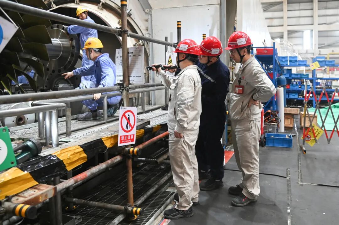 25天攻坚,见证了日夜兼程的奋斗。自检修开始以来,万宁公司组织技术骨干与参修单位人员扎根一线,昼夜轮班、连续奋战。面对热工、电气、机务等多专业深度交叉的复杂局面,指挥部坚持将协调会开在现场,问题解决在一线。技术骨干们履职尽责,兼顾施工管理与质量监督,对关键工序全程旁站、关键数据逐项复核,严控任何细微偏差。深夜的检修平台上灯火常明,技术人员围着转子反复测量、逐项校验,力求将风险消除在回装之前。