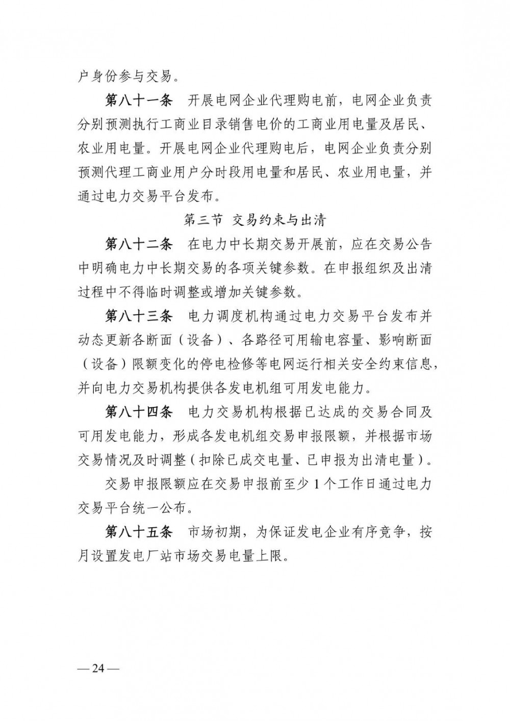 请电力交易机构加强对经营主体的宣贯培训、信息披露、风险防控等相关工作。执行中如有问题,请及时报告。