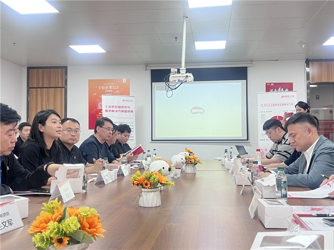京东工业华南能源行业负责人吾米提吐尔逊及其团队向深圳市氢能协会一行介绍了京东工业,他表示能源企业数智转型拐点已来,只有做好降本、增效、保供、合规才能抢占先机,赢得未来。为了更好地助力企业降本、增效、保供、合规,京东工业推出了太璞数实一体化供应链解决方案,通过供需两端的数智化打造数据流动的高速公路,实现让数据多流动、让商品少跑动,最终显著改善供应链的效率和韧性。