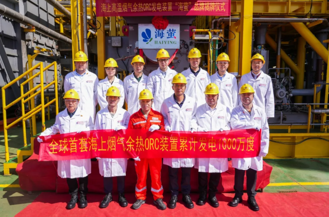 电站是海上平台的心脏,通常通过燃烧自产石油和天然气来提供电能,但此过程中会排放大量的高温烟气,ORC发电装置则以高温烟气为热源,ORC发电装置利用海上油气平台电站运行过程中产生的高温烟气余热作为热源,通过加热低沸点有机物产生高压蒸汽,从而驱动透平膨胀机发电,运行以来,该装置成功将机组供电能力提升20%、燃料利用效率提升8%,大幅提升了能源综合利用效率。文昌9-7平台ORC发电装置已稳定发电超1000万度,累计节省天然气消耗约600万立方米,可以满足2万户家庭一年的生活用气需求,减少二氧化碳排放约9000吨,相当于植树造林8万棵。文昌9-7油田总监张伟宁说。
