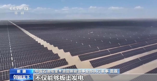 除了集中式电站,油田还在沙漠腹地的油气单井和场站建成了239项分布式光伏项目。已建成的光伏设施覆盖了约10万亩沙地,在发电的同时也起到了防风固沙、改善局部小气候的作用。中国石油塔里木油田新能源事业部执行董事雷霆介绍:我们通过在流沙上架设光伏板,不仅实现了板上发电,还能降低风速、形成阴凉,并在板下铺设滴灌带进行生物治沙,取得了多重效益。他表示,预计到明年,油田光伏总装机规模将超过400万千瓦。