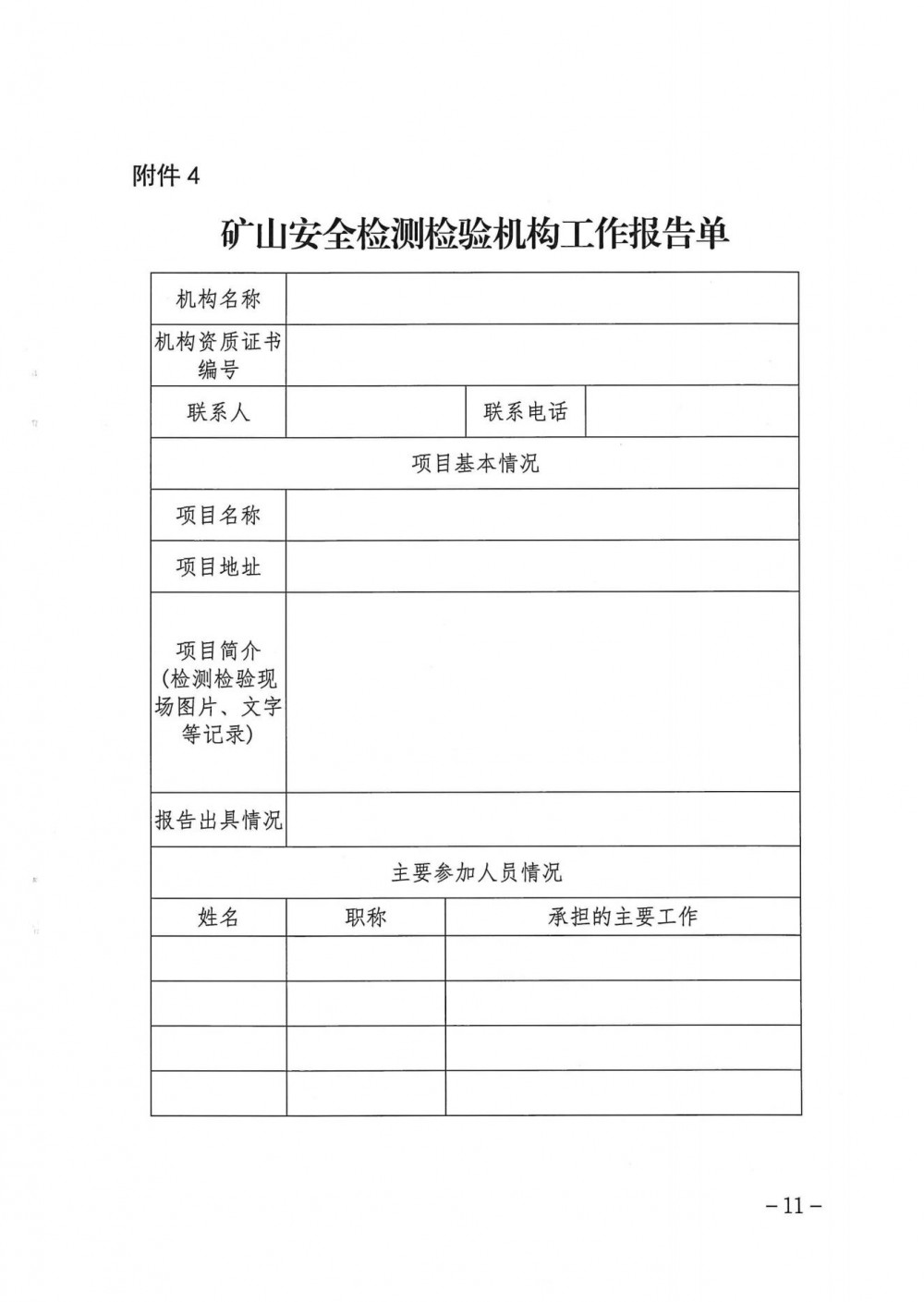 2.矿山安全检测检验机构报告登记表 3.矿山安全检测检验机构从业告知书 4.矿山安全检测检验机构工作报告单