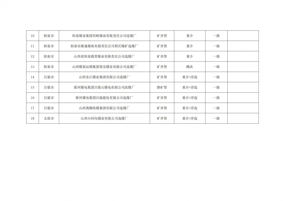 附件:山西省煤炭洗选标准化管理规范一级达标企业名单