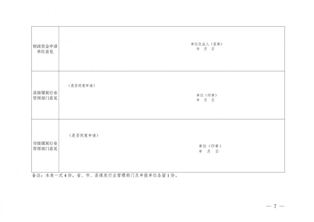 3.财政资金申请审批表(附件2)。经县、市两级煤炭行业管理部门审批合格并签字盖章。