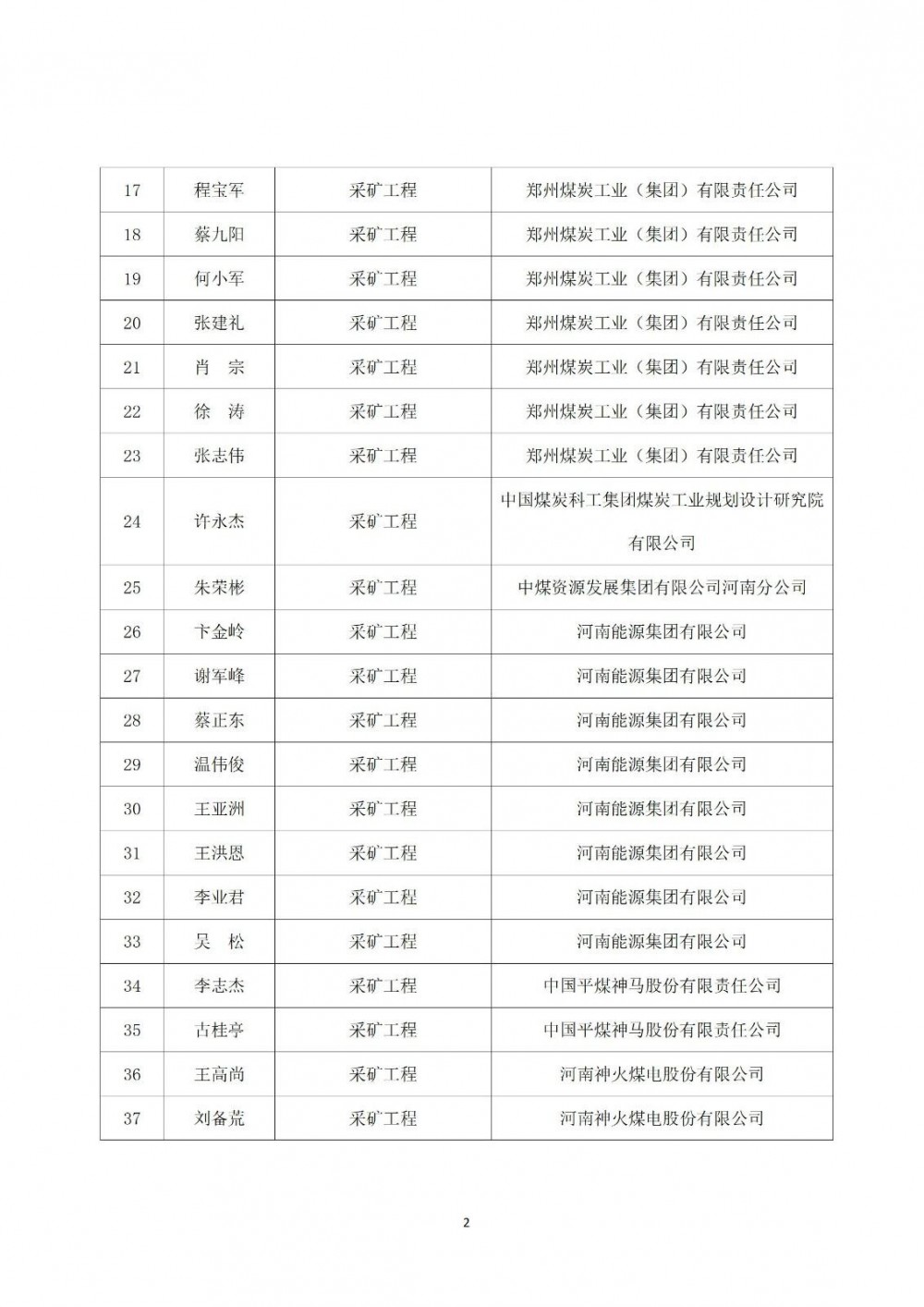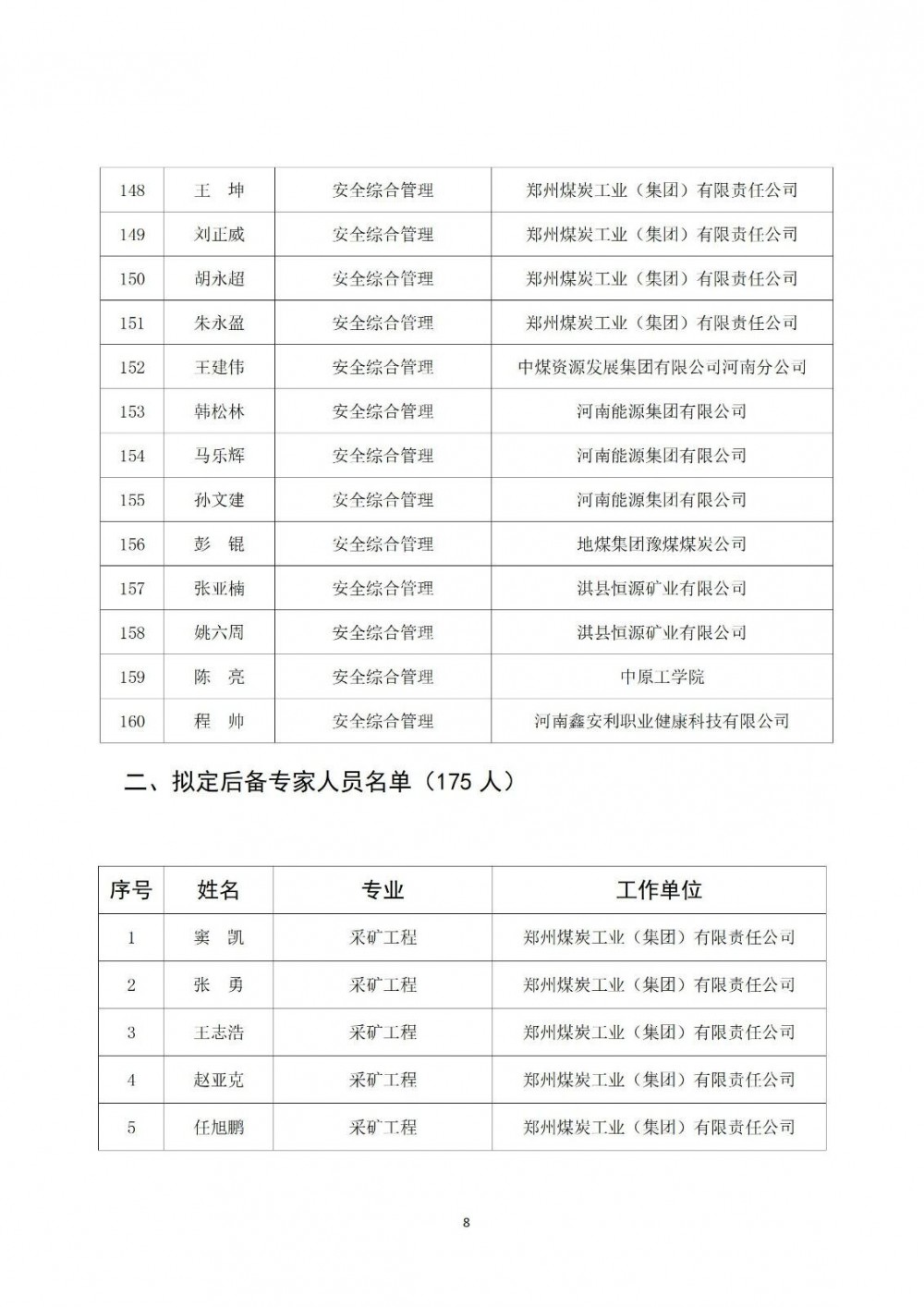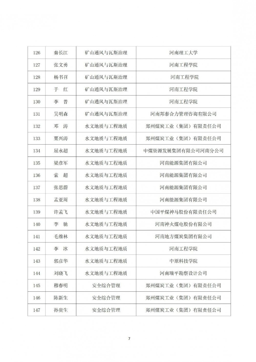 附件:郑州市煤矿安全技术专家库拟定入库人员名单